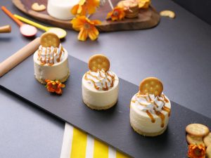-Pipe out salted caramel cheese filling in molds,spread evenly & freeze for 4-5 hours in freezer.