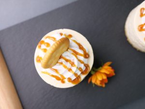 -Add half quantity of prepared salted caramel sauce & beat until well combined & reserve half quantity of salted caramel sauce for garnishing.