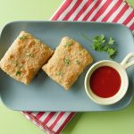 Cooked qeema aur anday ka mixture dal dein aur tamam edges ko fold ker ka anday sa seal ker lein (makes 4-5).