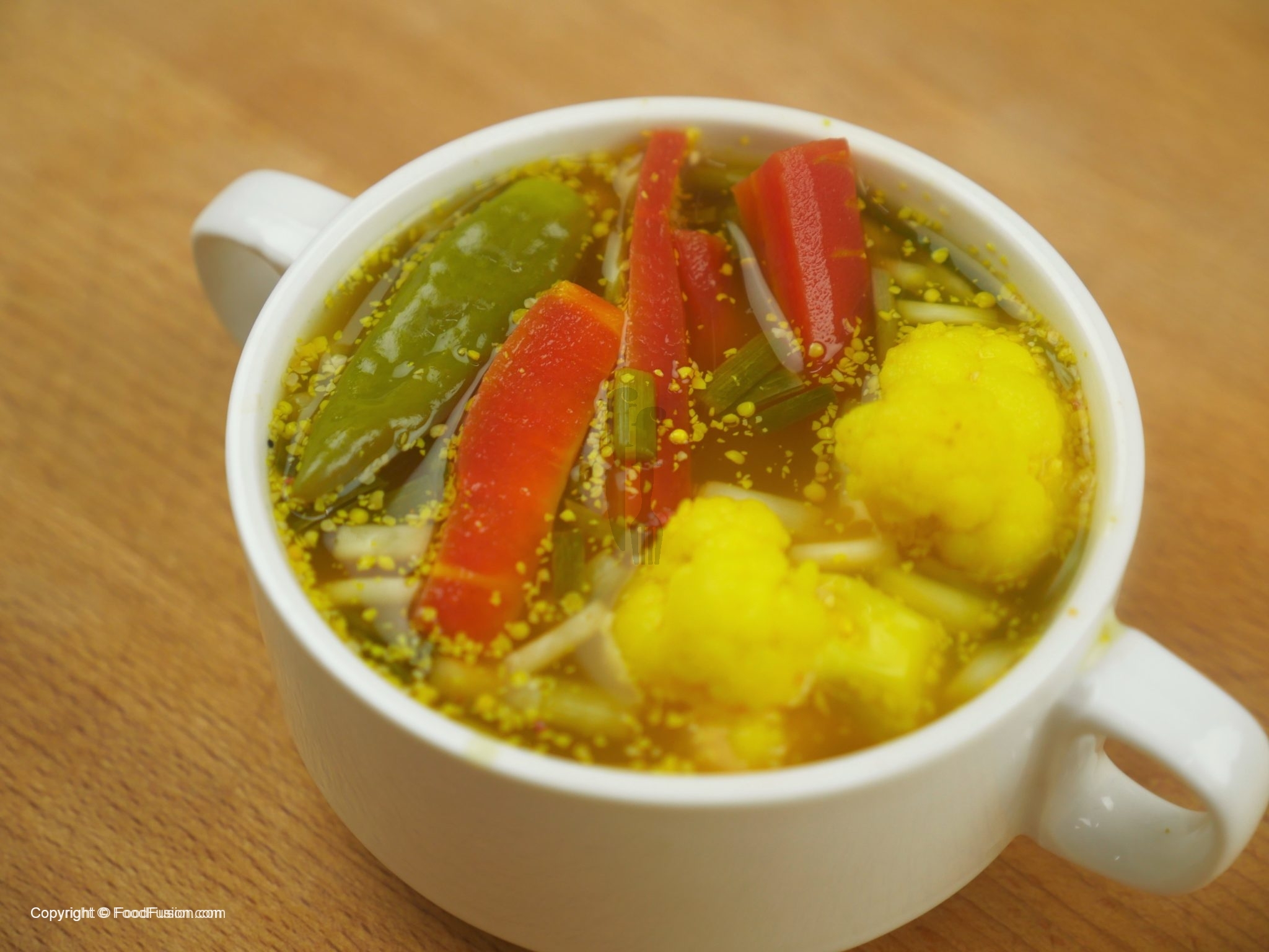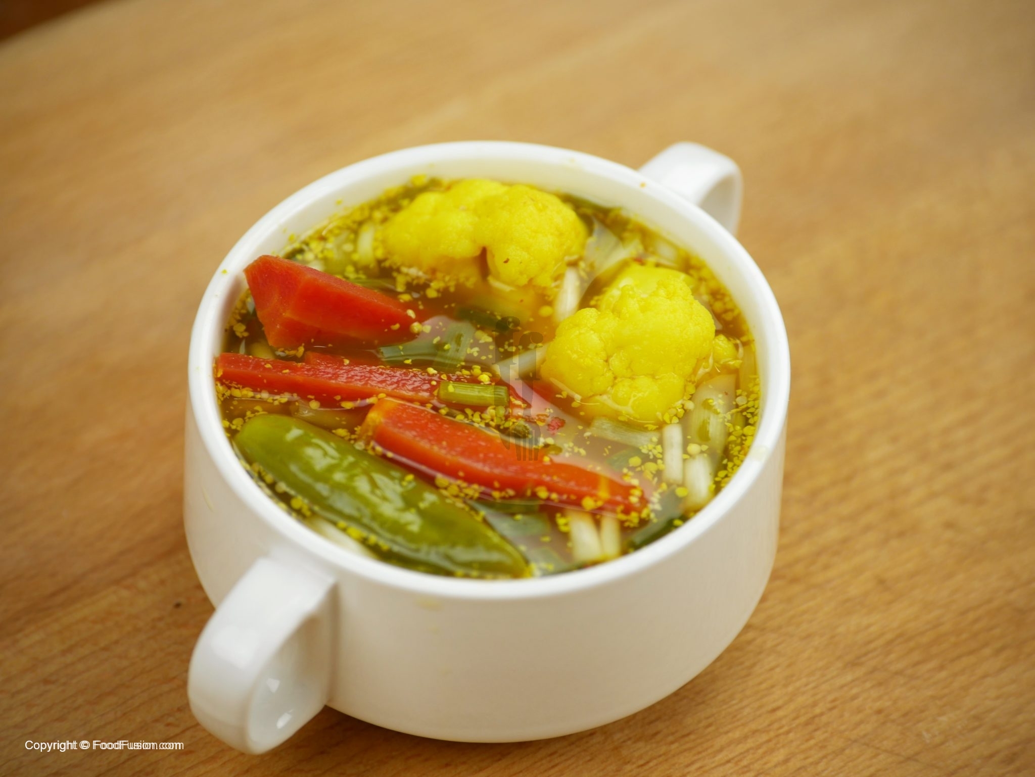 In jar,add carrots,cauliflower,green chilies,green garlic,salt,turmeric powder,mustard seeds crushed,red chili crushed and vinegar and mix well.