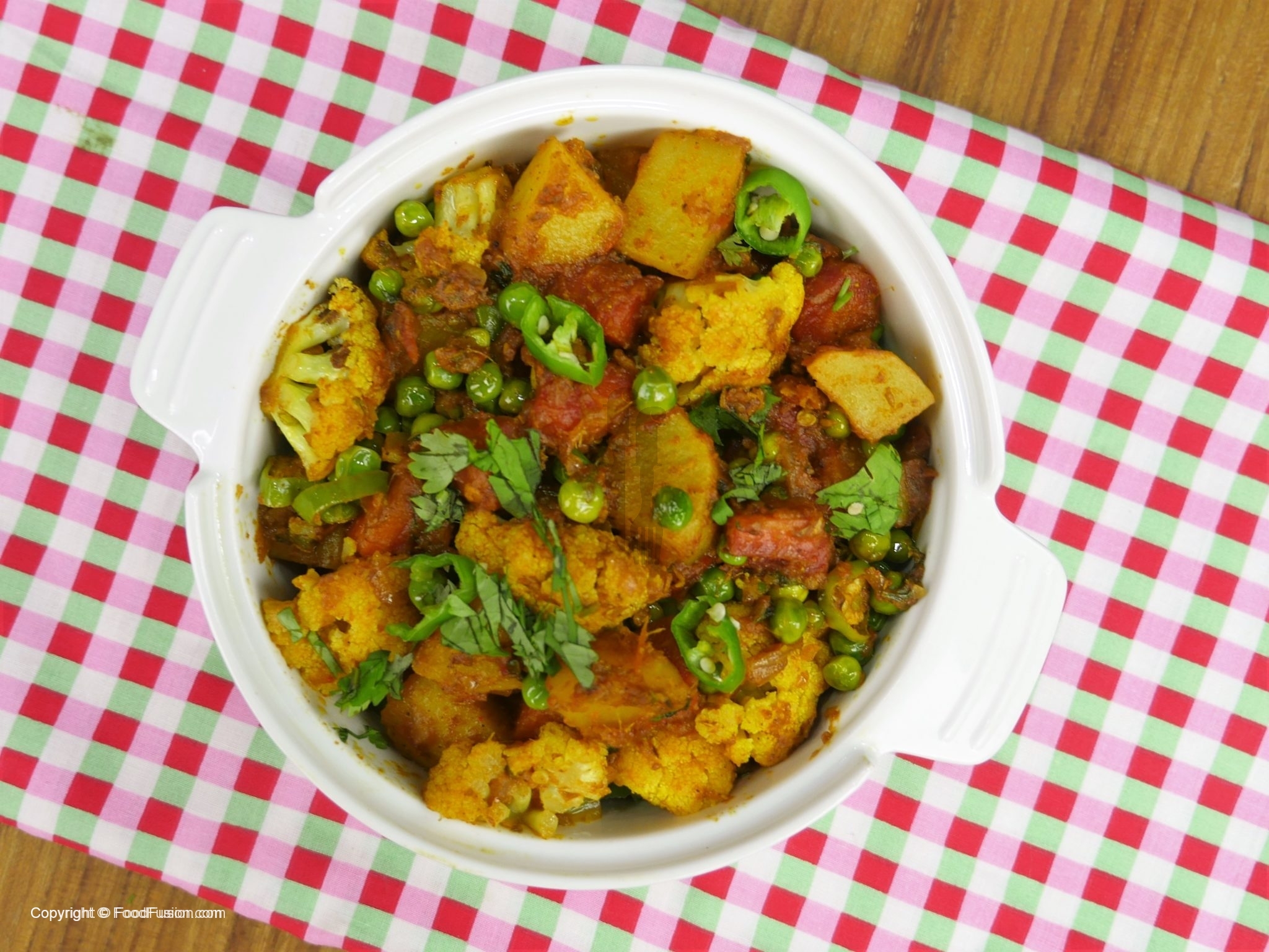 Karhai mein oil,aloo,gajar,phool gobhi aur adrak lehsan paste dal ker ache tarhan mix ker lein.