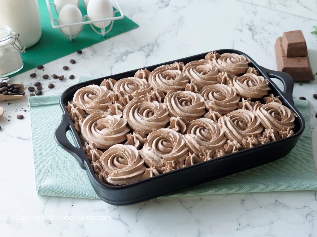 Cocoa powder dal dein aur soft peaks form hunay tak ache tarhan beat ker lein (approx. 4-5 minutes).