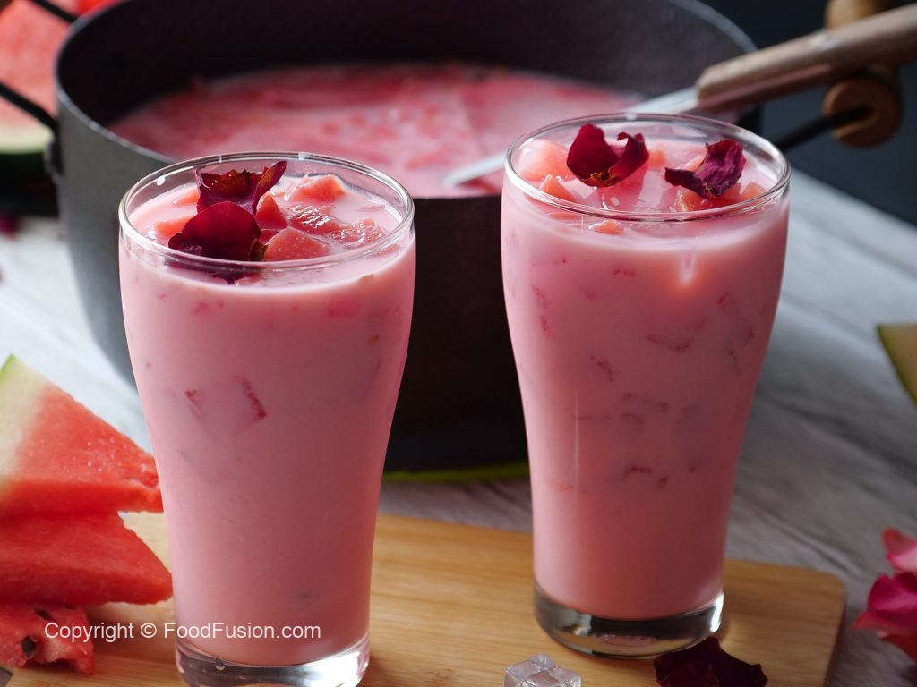 A famous street style Watermelon Drink, known as Mohabbat ka Sharbat. So quickly make this sharbat and spread some love with people around you. #FoodFusion #HappyCookingToYou #FoodFusion #SummerDrinks