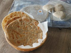 -Knead dough again until smooth,take a small dough (130g),make a ball & sprinkle dry flour & roll out with the help of a rolling pin.