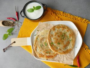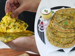 -Heat griddle & fry paratha on medium flame from both sides with clarified butter (makes 5).