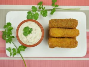 Mozzarella cheese sticks is ready,serve with sour cream dip.