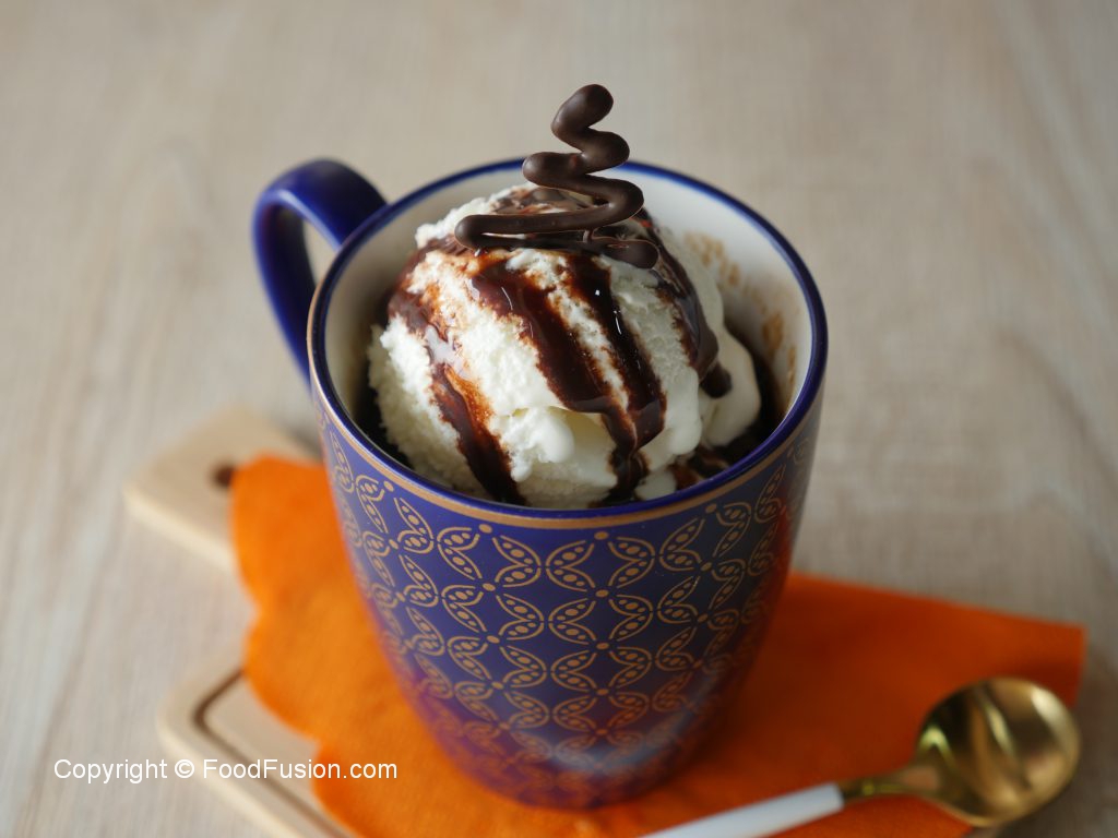 Garnish with vanilla ice cream,chocolate syrup & serve.