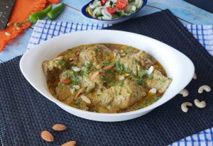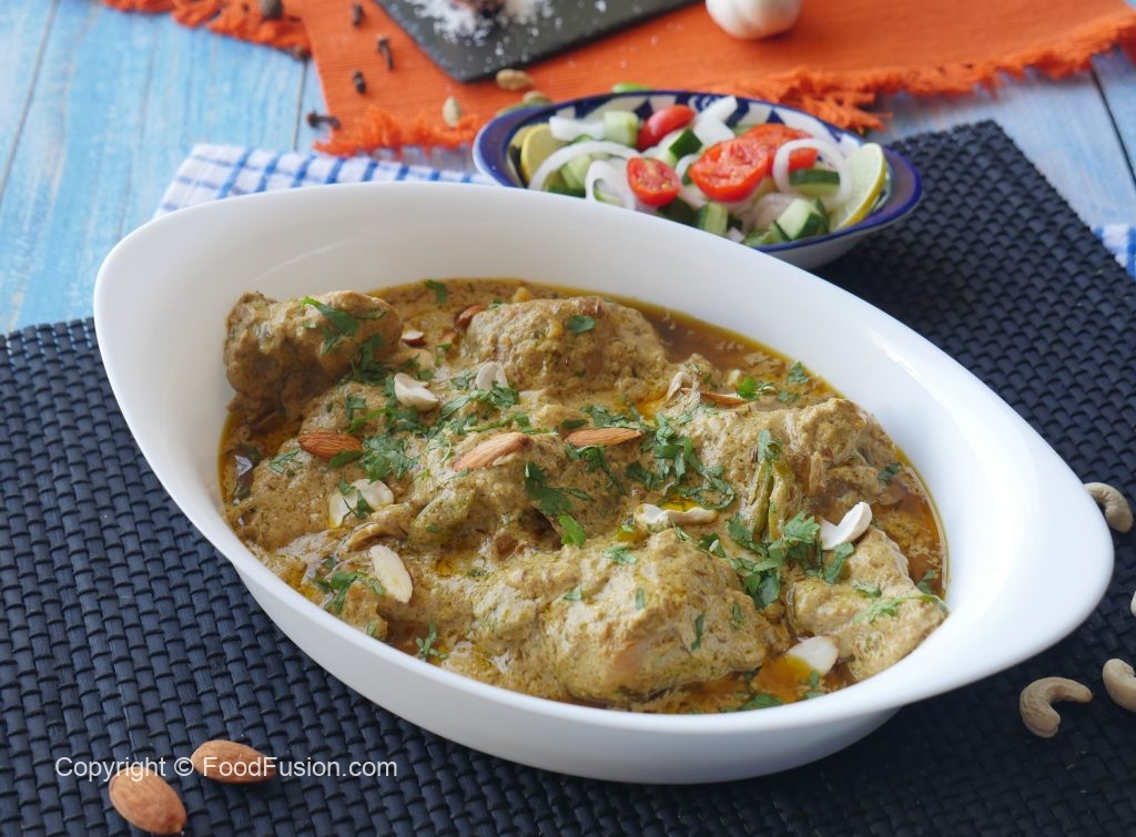 Spice mixer mrein dahi,kaju,badam,khopra,hari mirch,fried pyaz,hara dhania aur podina dal ker ache tarhan blend ker lein.