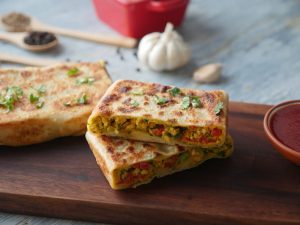 On girddle,place paratha,brush melted ghee & fry on medium flame from all sides until golden brown.