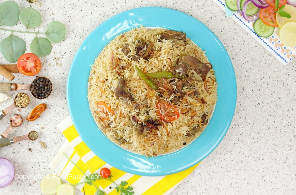 -On muslin cloth,add star anise,fennel seeds,coriander seeds,mace,black peppercorns,cumin seeds, cinnamon sticks,black cardamom,bay leaves,onion & tie to make a bouquet garni & set aside.