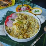 Pot mein boiled chawal ki half quantity,tayyar mutton korma,khoya,fried pyaz,spiced yogurt,hari mirch aur baqi bachay hoye boiled chawal dal dein aur dhak ker halki ancch per 18-20 minutes kliya steam cook ker lein.