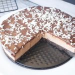 Grated white chocolate ko sprinkle kar k pan ko remove karden or Thanda serve karen.