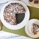 Sprinkle grated white chocolate over the cake and remove the pan.
