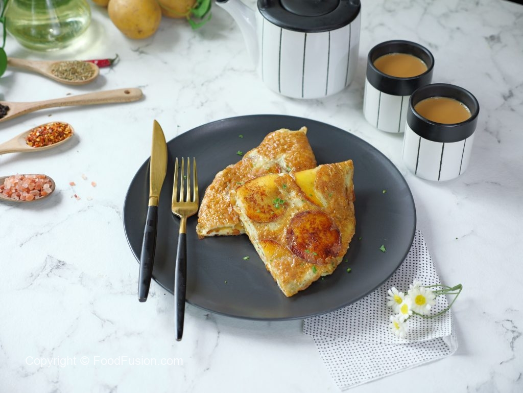 -Ab pheetay hoye anday,mozzarella cheese,fresh parsley aur lal mirch crushed dal dein aur dhak ker halki ancch per 2-3 minutes kliya paka lein phir flip ker ka serve karein!