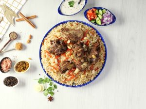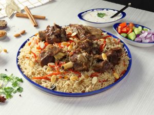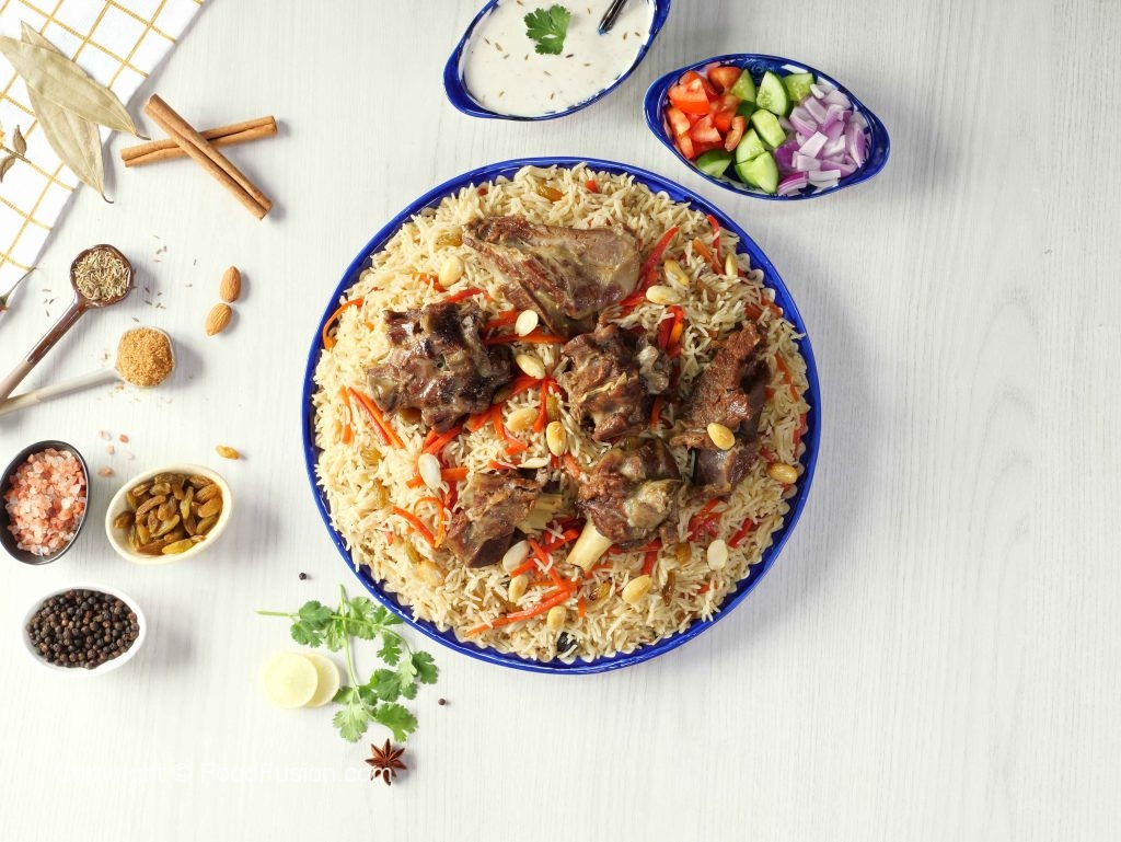 -Garnish with reserved carrots & raisins,fried almonds & serve with salad & raita!