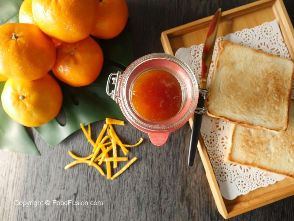 Agar marmalade ka upper koi scum ho tou spoon sa nikal lein aur sterilized jars mein dal dein.
