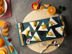 In serving cups,add a layer of orange mousse,whipped cream and scrape excess cream.