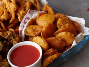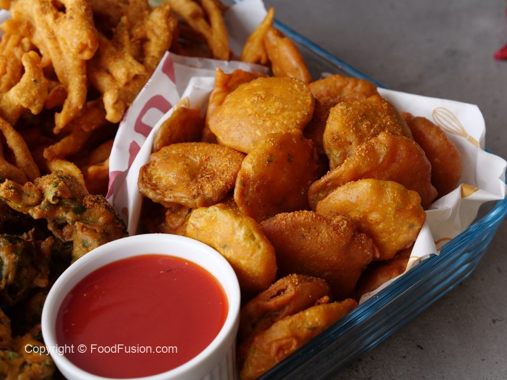 -Sprinkle chatpatta magic masala on pakora platter & serve with chutney or tomato ketchup!