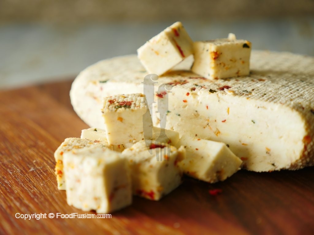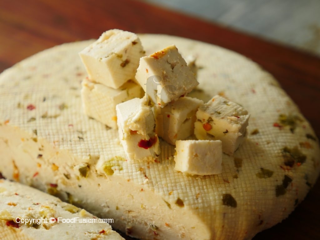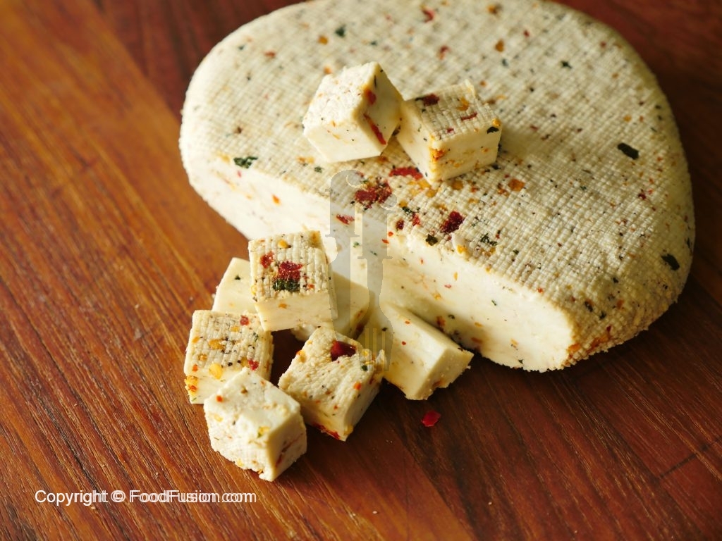 In bowl,add cottage cheese,jalapenos,pickled cucumber,red chili crushed,dried oregano and mix well.