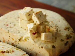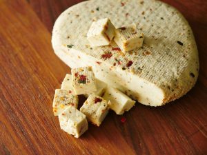 Now line the strainer tray with muslin cloth/cheese cloth and enclose flavored cheese with muslin cloth and put heavy weight on it.