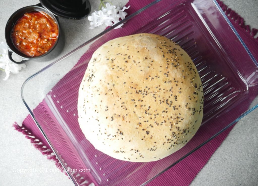 Grease dough with oil,cover and let it rest for 50 minutes.