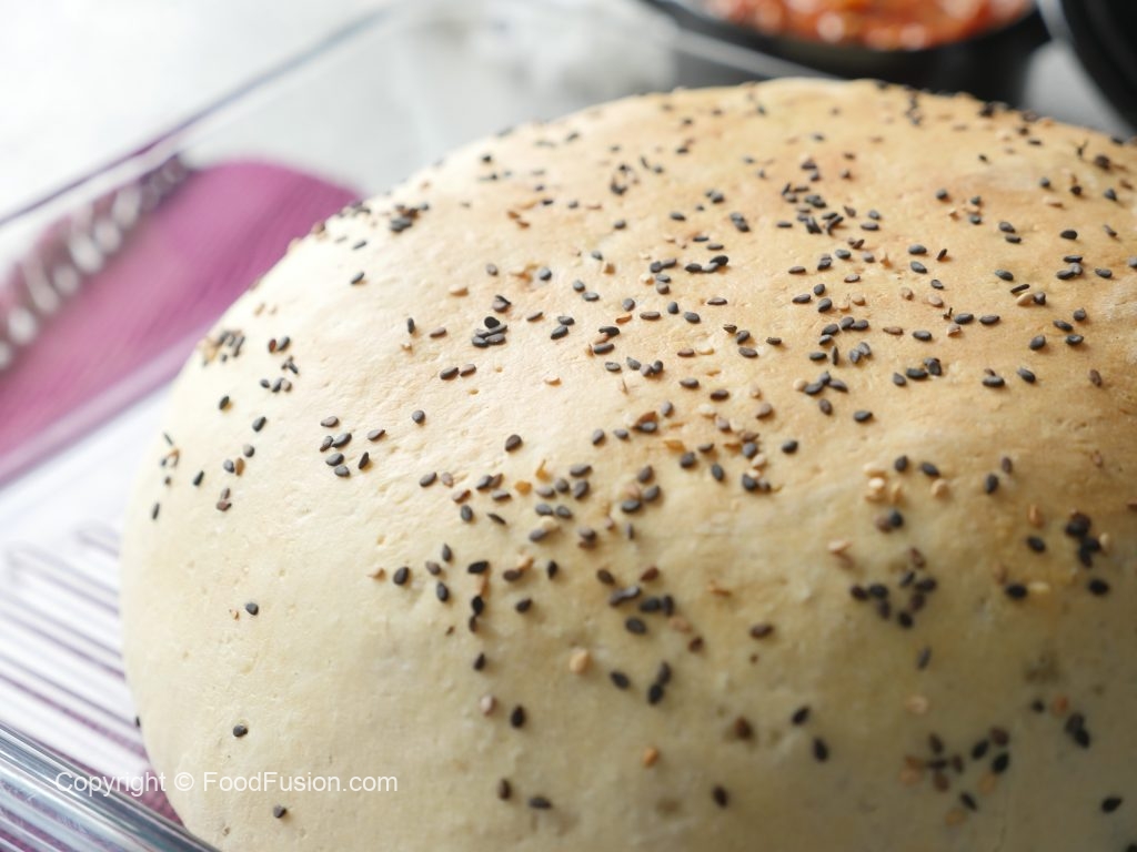 Dough ko oil sa grease karein aur dhak ker 50 minutes kliya chor dein.