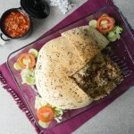 Fried pyaz dal ker dough ka edges ko fold ker ka oil sa grease ker lein aur baking tray (10x10 inches) per flip ker lein.