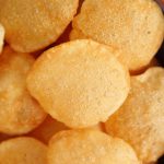 -Karhai mein cooking oil garam karein (180C-200C) aur darmiyani ancch per golden & crispy hunay tak fry ker lein (nudge ya press down ker lein ta ka puris puff up ho jayein) phir net strainer per strain ker lein aur puris ko 1-2 hours kliya room temperature per air dry ker lein (makes 55-60).