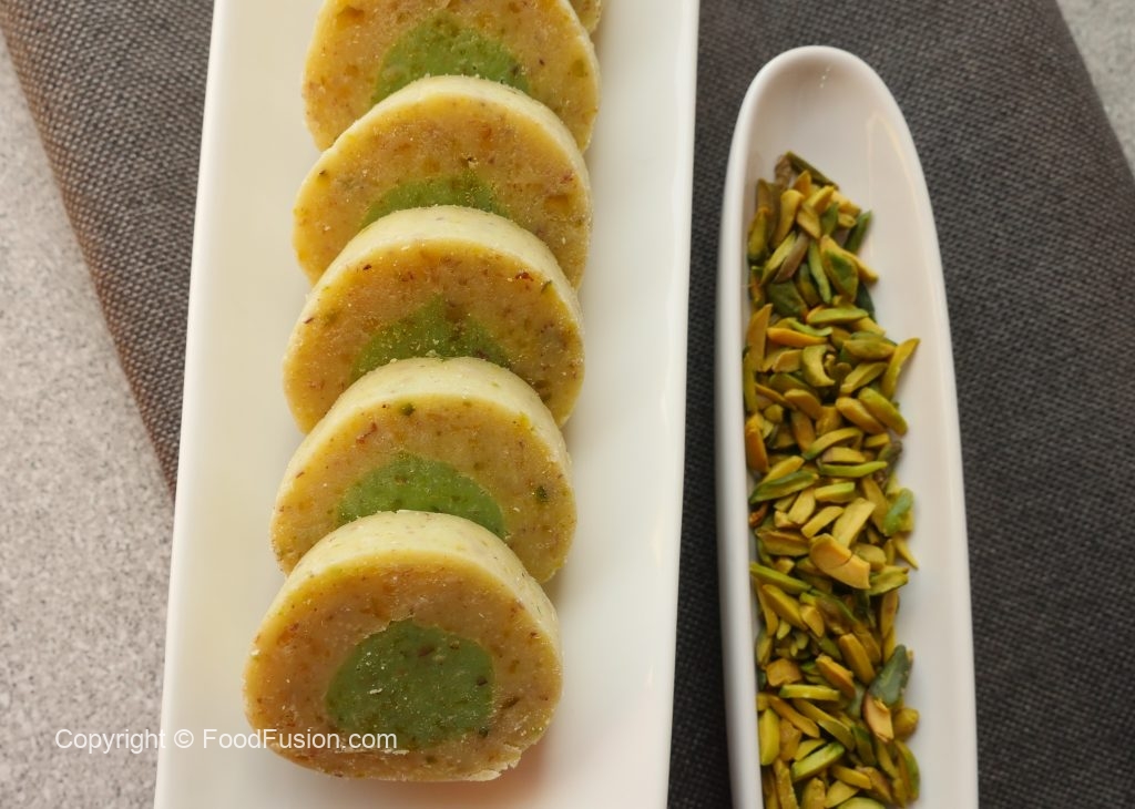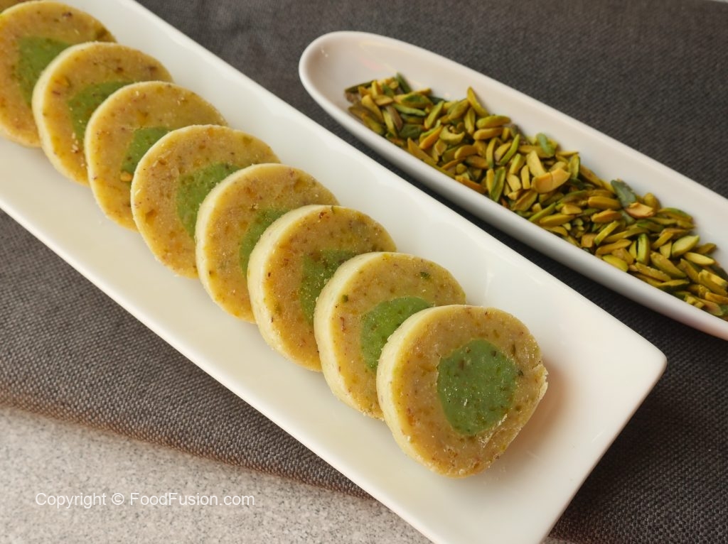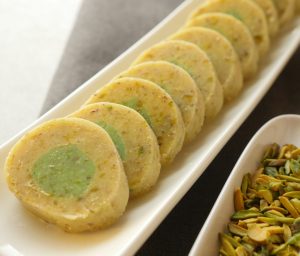 Just like you get at the mithai wala. A pista barfi recipe to satisfy your sweet cravings. #HappyCookingToYou