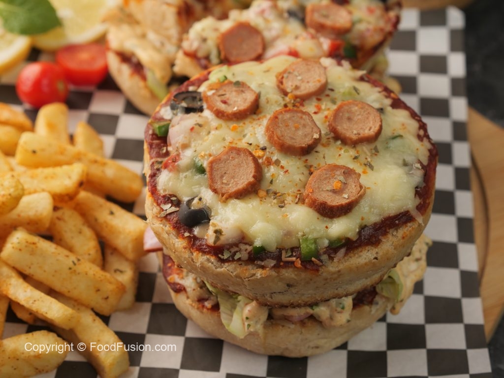 Combine the best of both worlds in a fusion of Pizza and Burger. #HappyCookingToYou #FoodFusion #Monsalwa