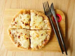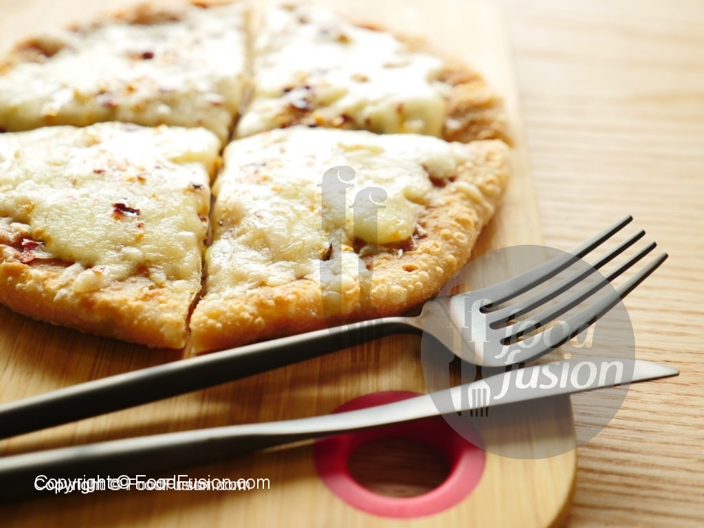 Cheddar cheese,mozzarella cheese,pizza sauce,lehsan powder,lal mirch crushed,dried parsley aur namak dal ker ache tarhan mix ker lein aur side per rakh dein.
