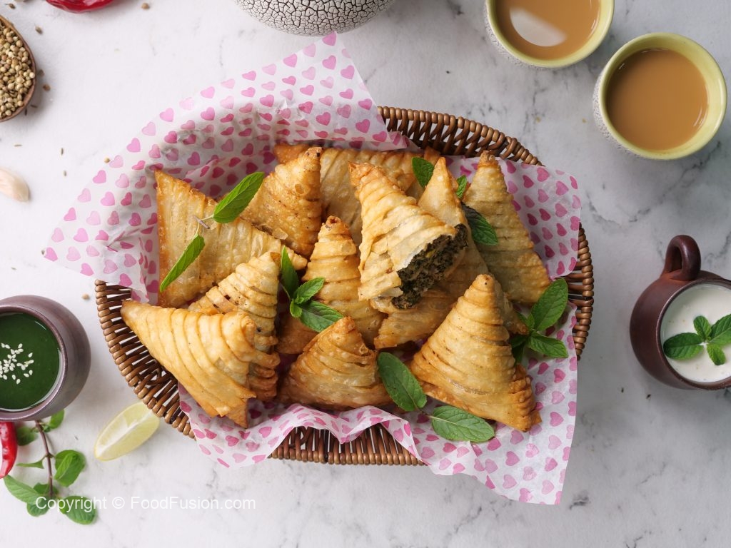 -Maida ki slurry laga ker pocket bana lein aur qeema filling ko center mein bhar dein aur samosa ki shape bana lein aur corners ko maida ki slurry sa seal ker lein (makes 12-14).