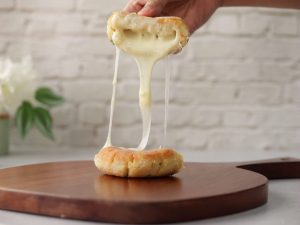 -Add mozzarella cheese & wrap the cling film to make a thick pancake shape.