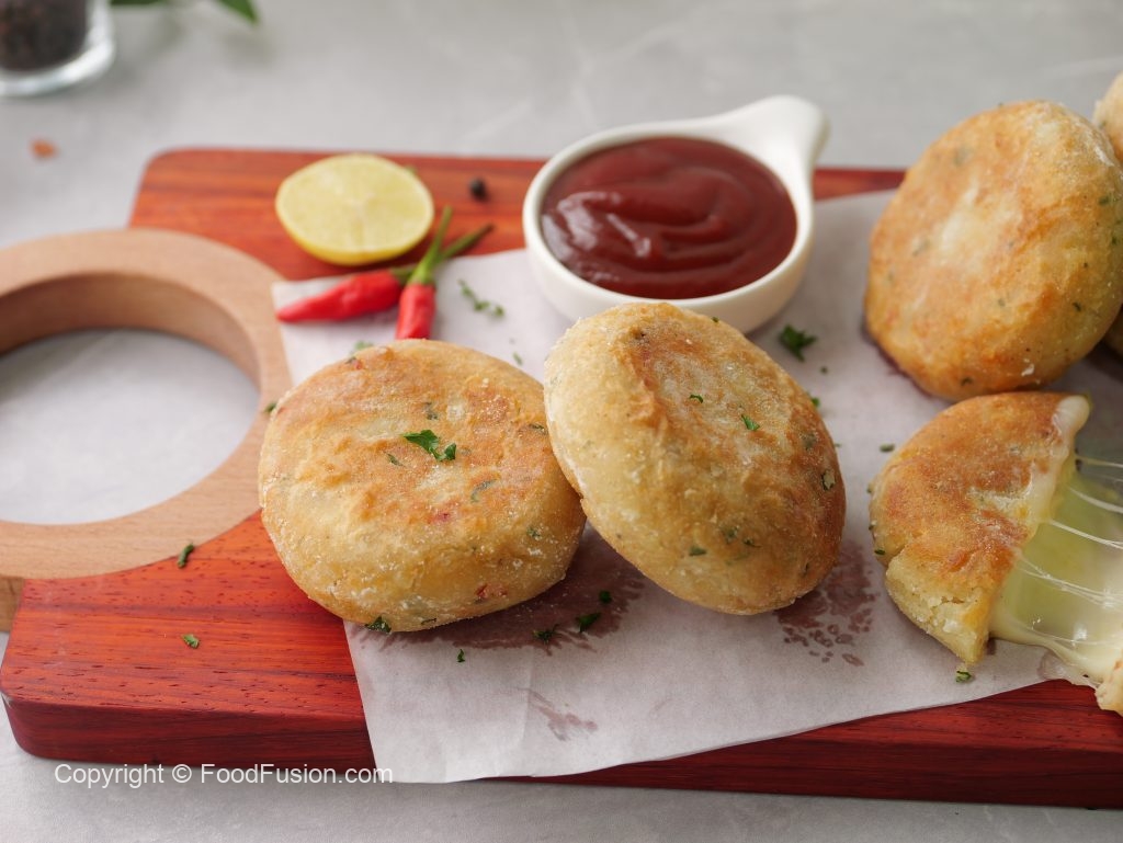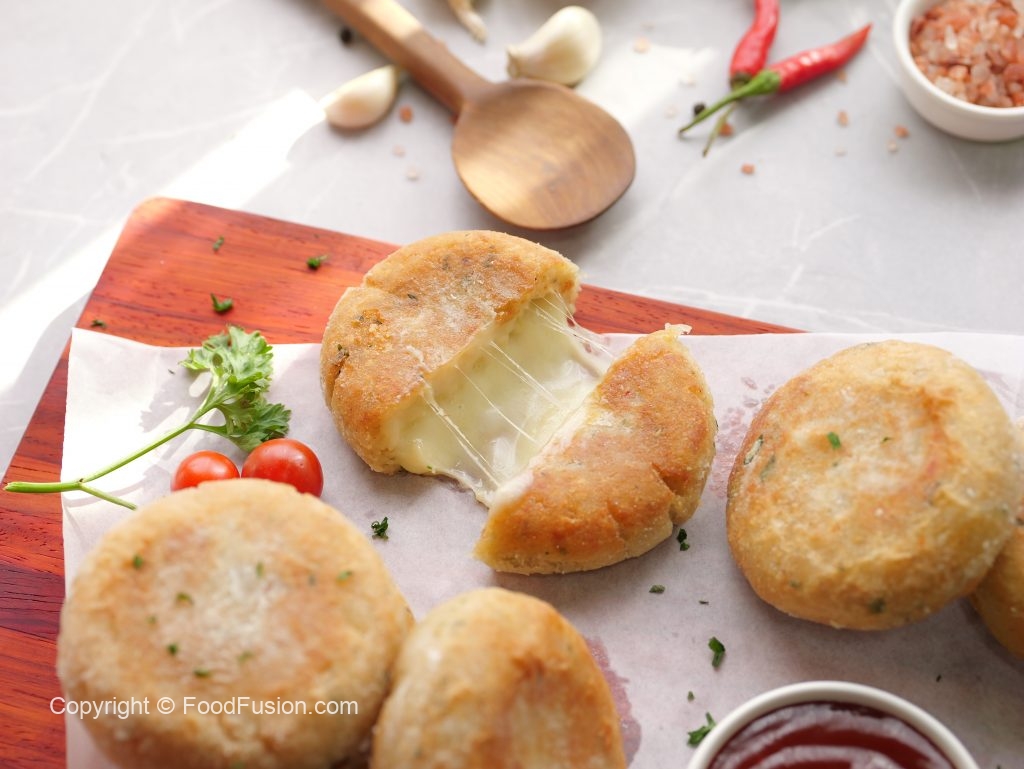 Golden potato patties stuffed with gooey cheese—crispy outside, melty inside. Perfect for a snack or side! These potato cheese cakes are little bites of happiness! #happycookingtoyou #foodfusion #araywahh #monthofgood