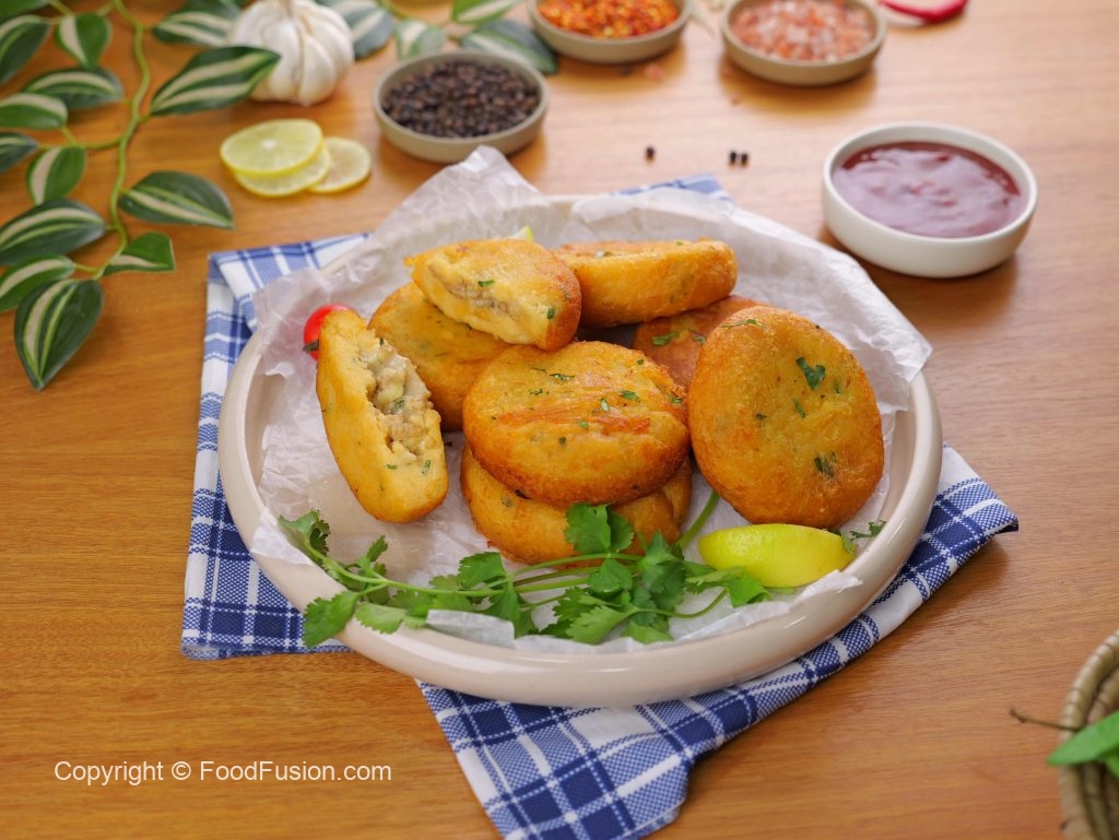 In a pan, add cooking oil, heat it (160 C), add prepared patty, fry on medium flame until golden & crispy.