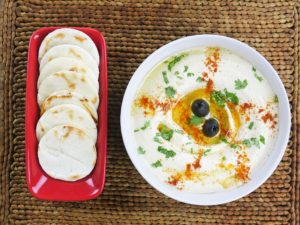 To prepare hummus, in tahini paste add hummus ingredients gradually and blend.
