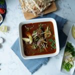 Garnish with green chilli,ginger,fresh coriander,lemon wedges & serve with naan.