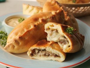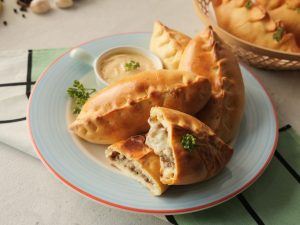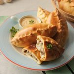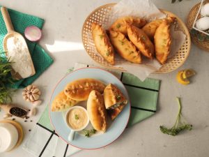-Tayyar filling (3 tbs) dal dein,edges per pani laga lein aur dough ko lift ker ka press karein aur filling ko seal ker ka pinch & seal ker lein (makes 12-14).