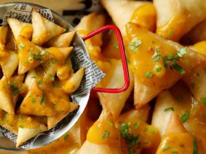 -Cheddar cheese aur mozzarella cheese dal ker ache tarhan mix ker lein & side per rakh dein.