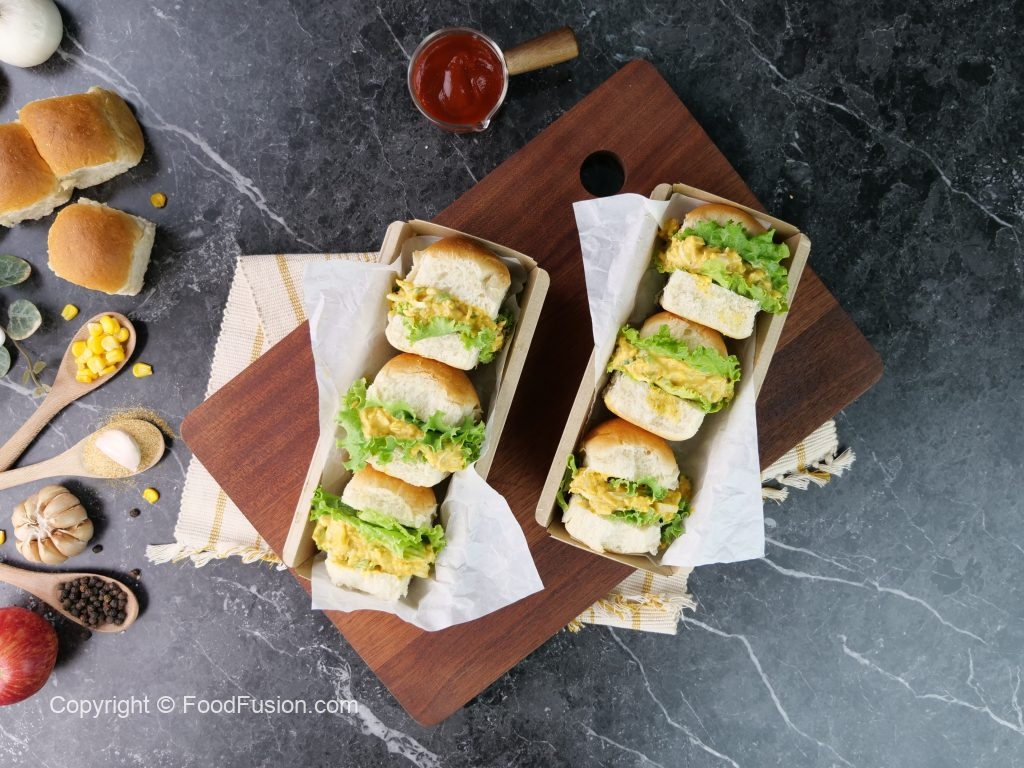 -Mini slider bun ko center sa cut ker lein,salad patta rakh ker tayyar egg salad dal ker serve karein! (Serves 8-10)