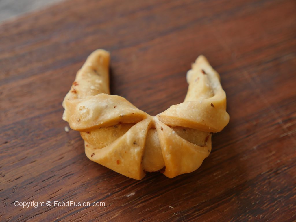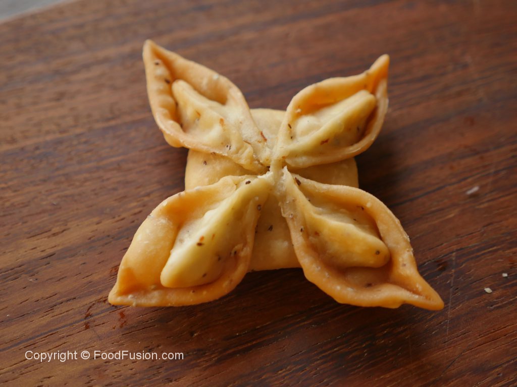 Dough ko plat lein aur corners ko bahir nikal ker flower ki shape bana lein.