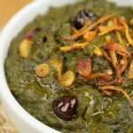After cooking, blend the whole mixture with hand blender, add maize flour,stir well and cook until saag thickens,set aside.