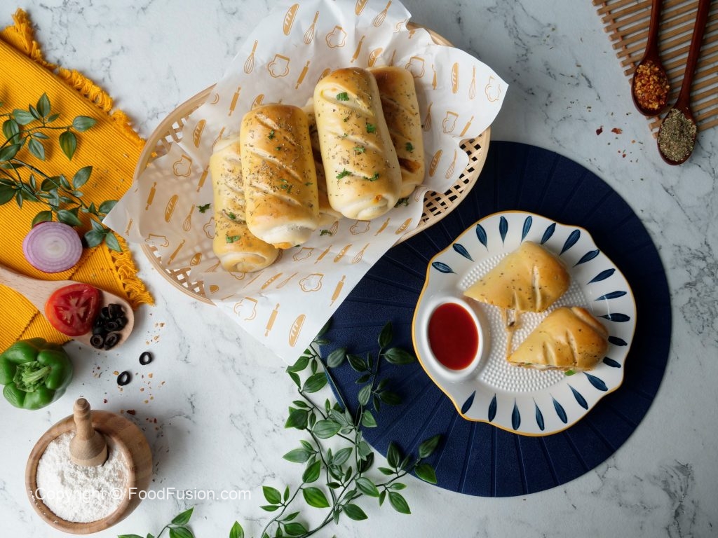Ek portion lein (100g) aur ball bana lein,maida chirak dein aur rolling pin ki madad sa bail lein (10 x 7 inch).