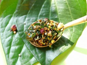 -Cut & remove midrib stem of the betel leaves & cut with the help of scissor.