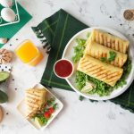 Grease grill pan with cooking oil & grill folded crepe from both sides until golden brown (1 minute each side) (makes 9-10).