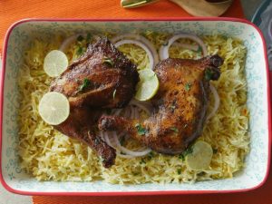 -Thread marinated chicken in wooden skewers (make 7-8 skewers).