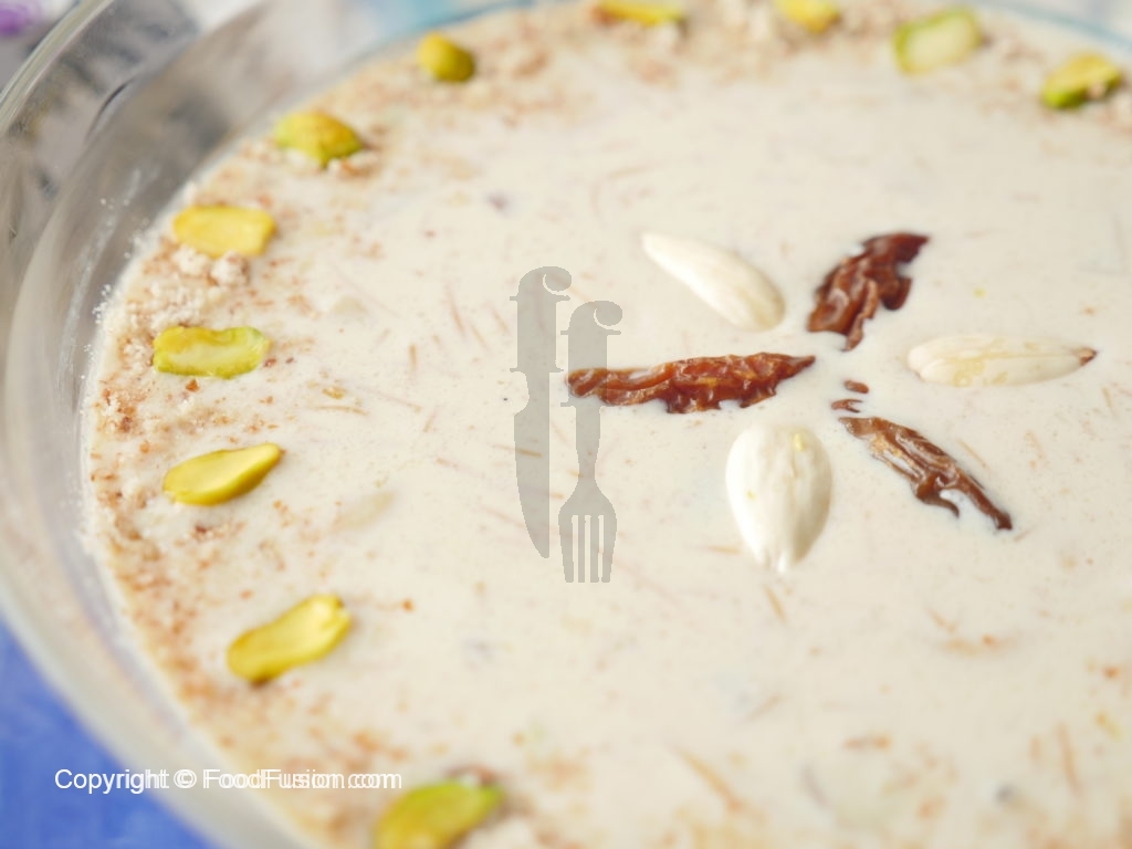 Doodh mein fried sawaiyan dal ker ache tarhan mix ker lein aur halki ancch per 3-4 minutes kliya paka lein.