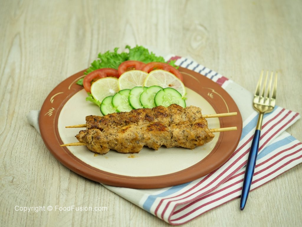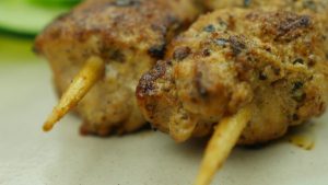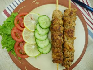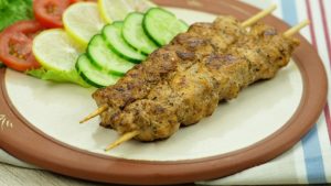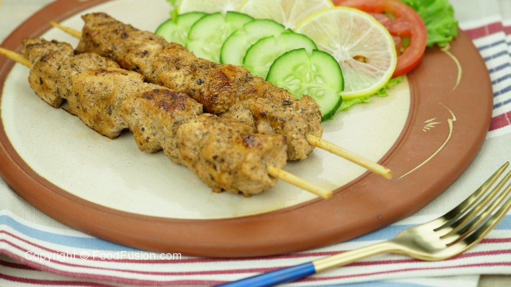 In bowl,add chicken boneless cubes,yogurt,olive oil,tomato paste,garlic,salt,paprika powder,black pepper powder,cumin powder,dried oregano and mix well.
