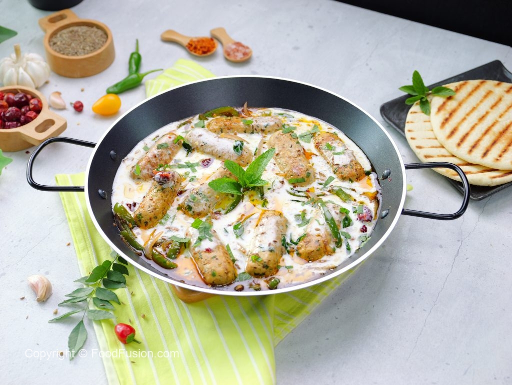 -Grease a plastic sheet with cooking oil,place 50g (2 tbs) of mixture,fold plastic sheet & slide a little to make a cylindrical kabab (makes 16-18).