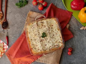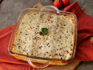 Place prepared lasagna,cover and bake on medium flame for 12-15 minutes.